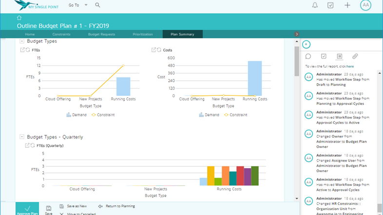 MySP Budget Management allows you to gate the budget initiation process and orchestrate the perspectives of risk, business alignment, capacity and budget constraints. It generates a what-if scenario that optimizes the budget structure yearly plan while supporting the changes it undergoes throughout the years. MySP Budget Management does this while integrating with your existing ERP, GRC, PPM and other IT assets.